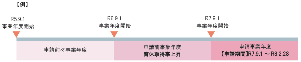 申請に係る事業年度(育児休業取得率が上昇等した事業年度)の翌事業年度の開始日から起算して6か月以内です。