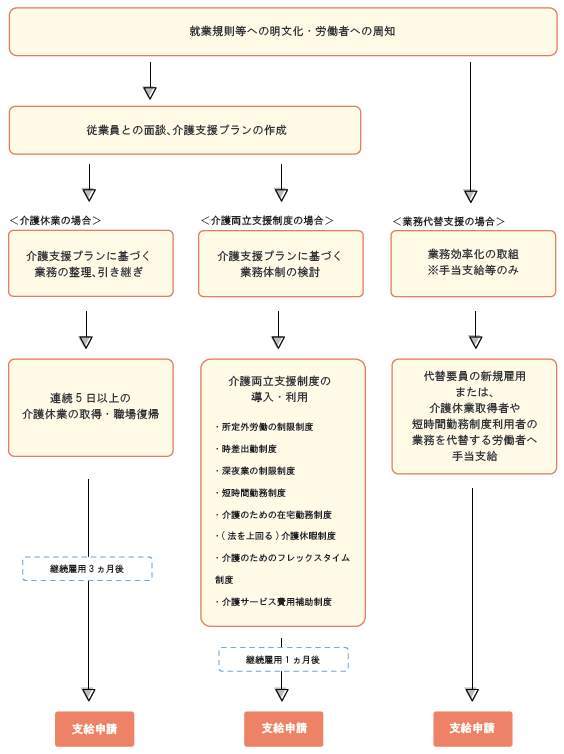 介護支援プランを作成し、プランに基づき介護のための短時間勤務制度や介護休暇制度などの仕事と介護の両立ができる制度を利用させた場合。